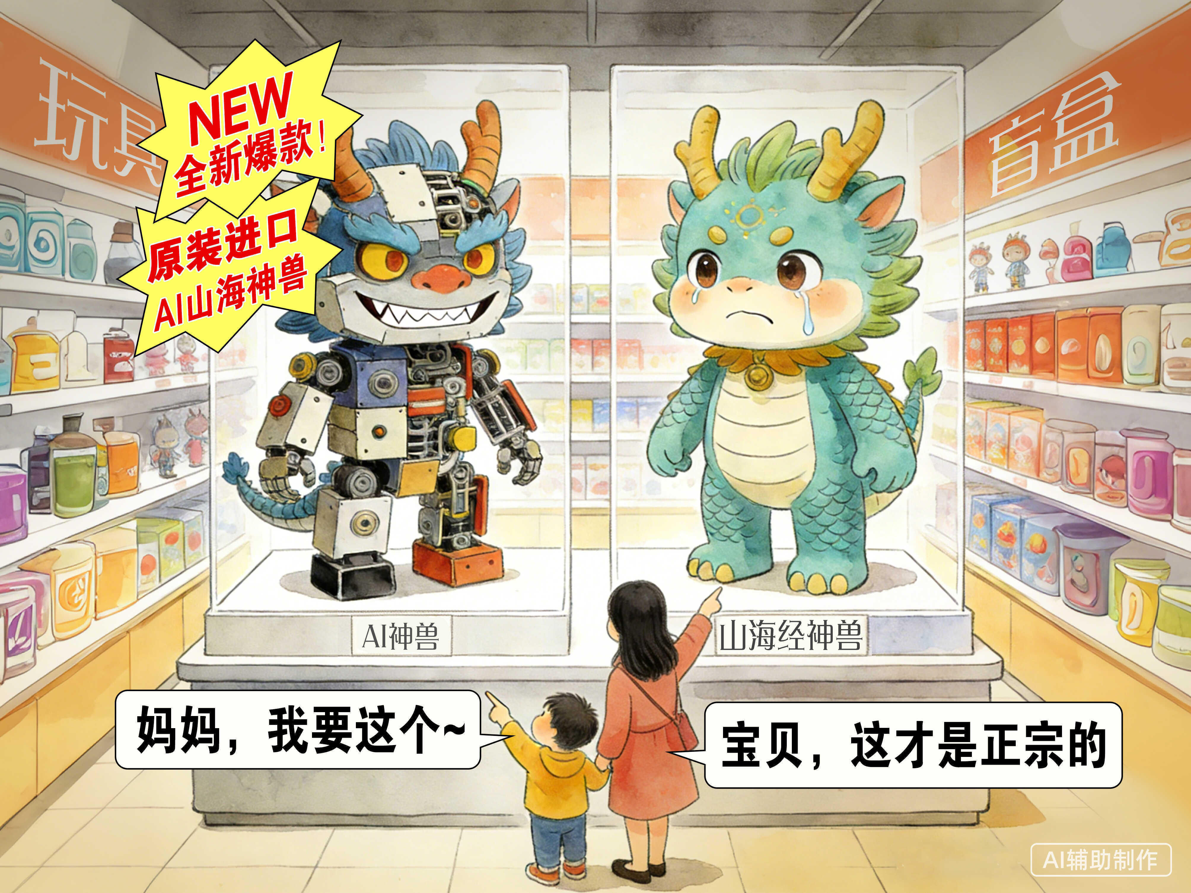 “AI拼接怪兽”“外国山海经”持续冲击未成年人的认知体系和审美积累。有的孩子甚至产生“山海经源自于外国,中国的山海经不如外国好”的错误认识。面对人工智能带来的新挑战,各方应当携起手来,主动开启必要的未成年人“护航模式”。(图文:许子杰)